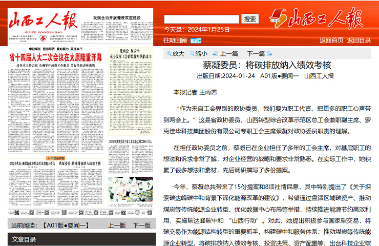 5?20丨《太原日?qǐng)?bào)》頭版頭條報(bào)道佳華:AI加持 激發(fā)綠色新動(dòng)能
